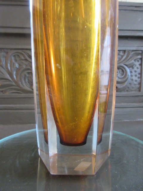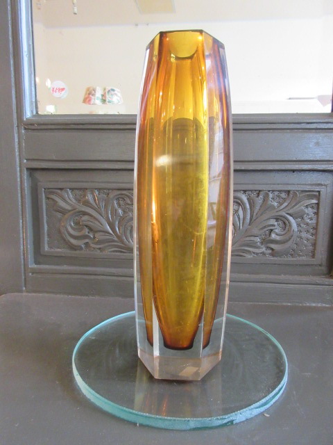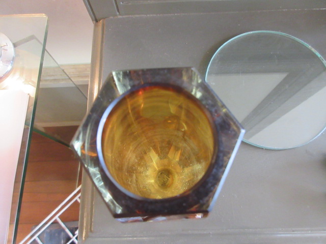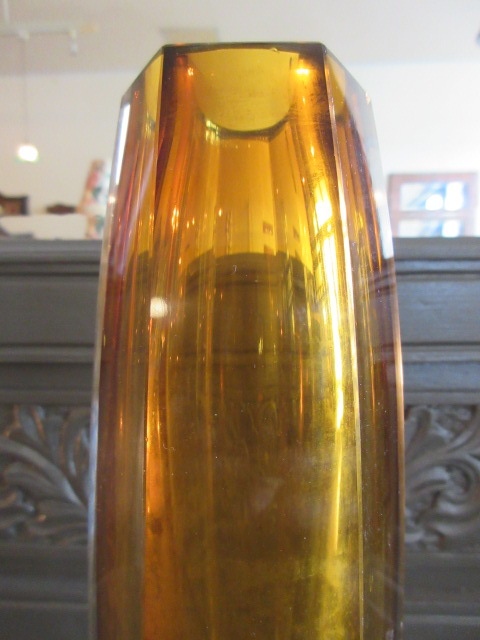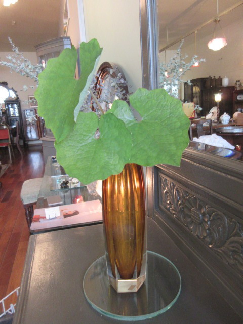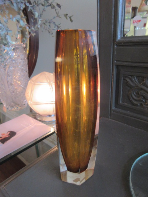 アーバン色のスッキリしたフォルムの花瓶。カットガラスです。
