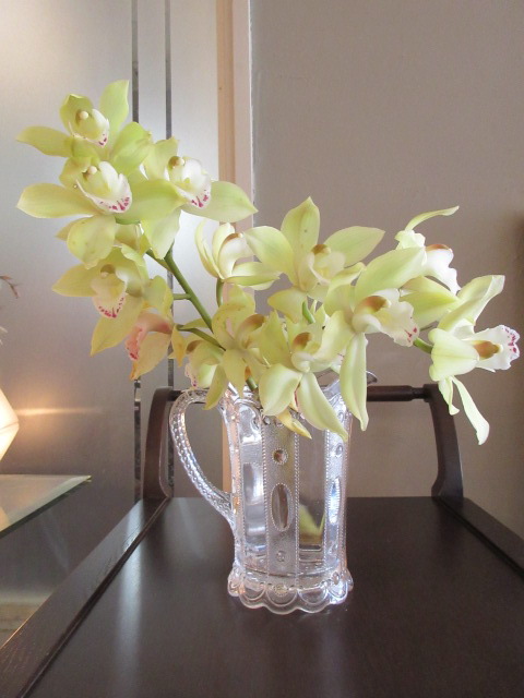 ちなみに我が家で咲いたシンビジュームを飾ってみました。薔薇なども似合いそう。