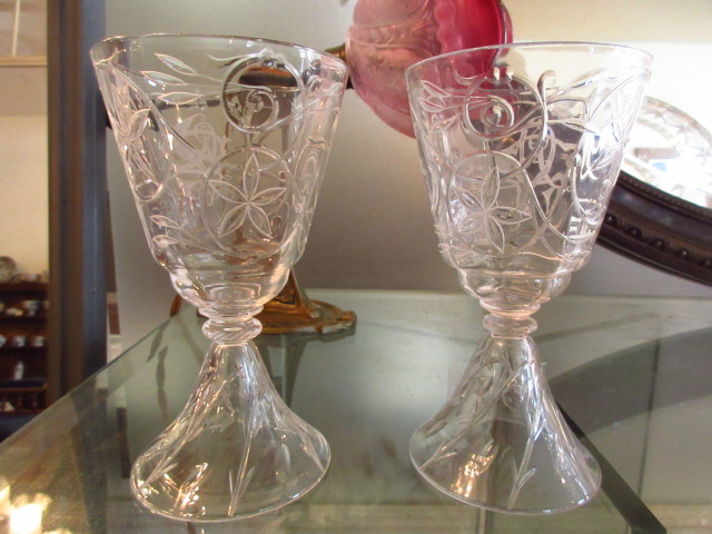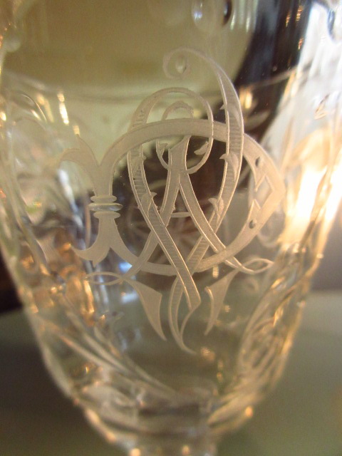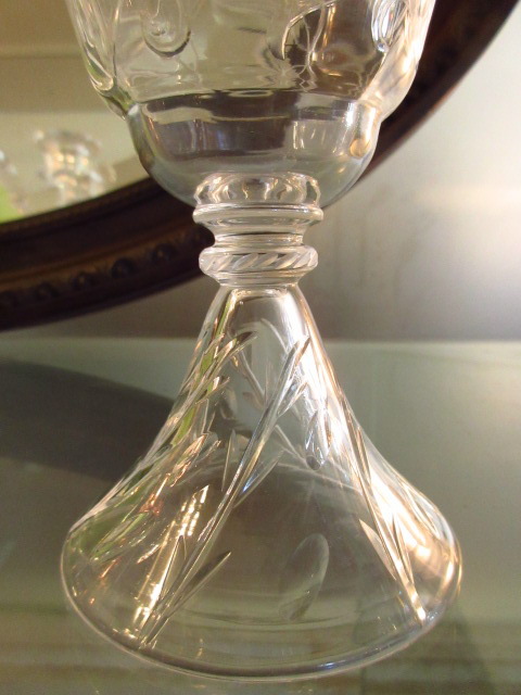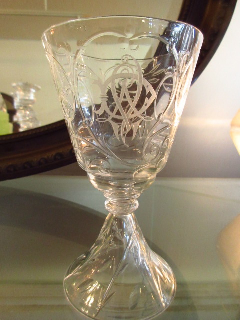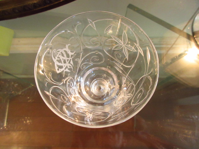 | FRANCE バカラ.ワイングラス 美しい家紋が彫ってあり、全体のカット模様からも特別に作らされたグラスと思われます。 足が安定しグラスがひっくり返って割れないような配慮のデザインにもこだわりを感じます。 なかなかお目に掛かれないバカラの一品です。4客ございます(残り2客になりました) サイズ 口径 8.3cm H 15cm 直径(底) 7.3cm プライス SALE \25.000(単品価格) |
