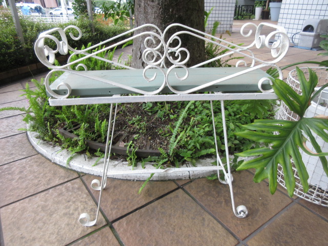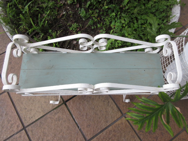 ホワイト色のアイアン模様がラブリー。中のペパーミントグリーンは木、取り外し可能です。