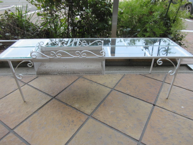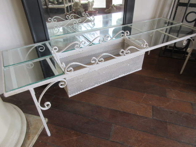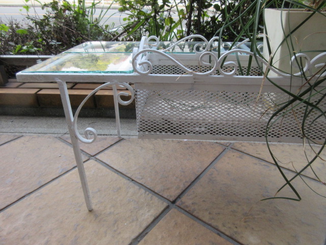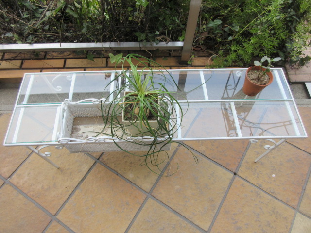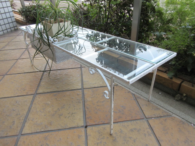 アイアンの上にはガラス板(厚みのあるガラス)。鉢物を並べると可愛いです。