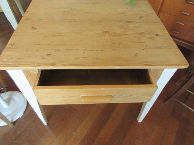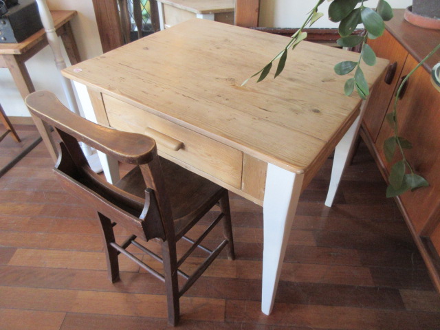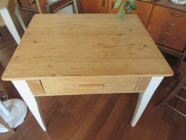 オールドパインのテーブル。奥までの引き出しが魅力です。。