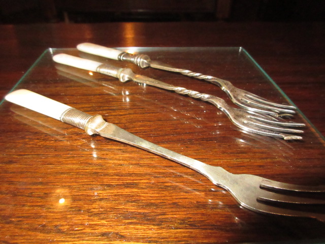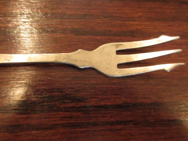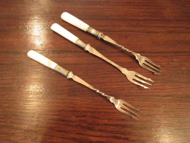 シルバーにシェルの素敵なピクルスフォーク、3本ございます。
