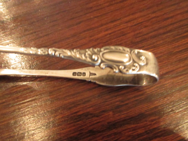 美しい装飾が入ったシルバーシュガートングです。