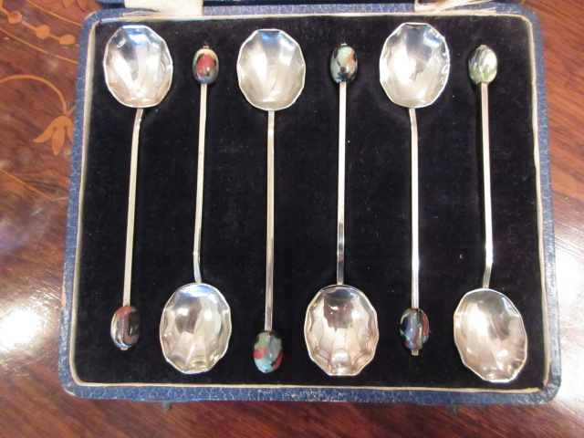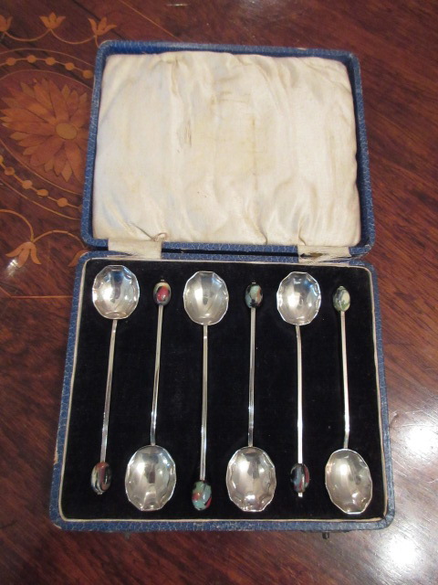 シルバープレートのティスプーンセット、古いケース入りです。