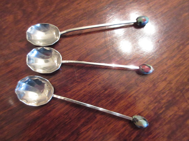 スプーンの先っちょには色とりどりの古いガラス玉、可愛いんですよ。