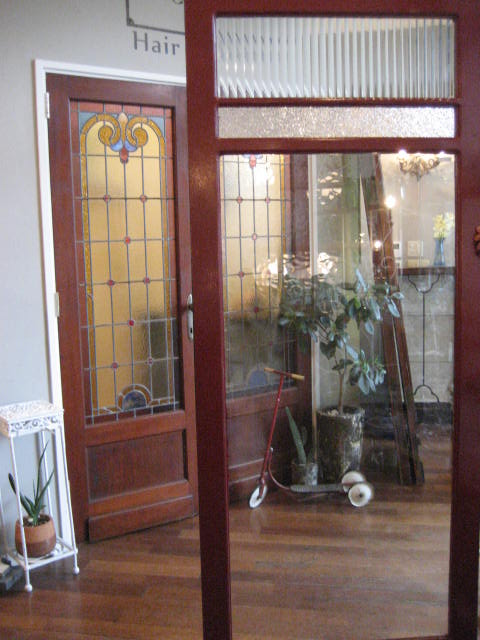 黒&赤の枠、上方の素敵なガラスがポイントのシックなドアです。