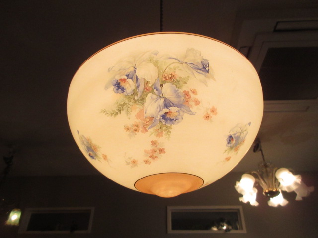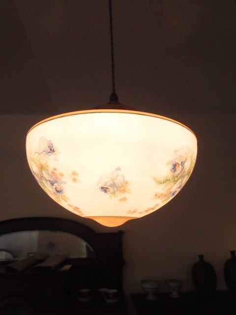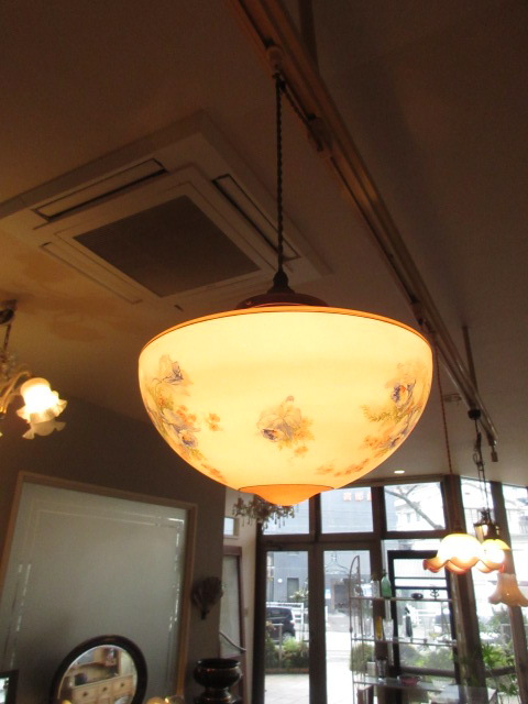 全体の雰囲気が柔らかく、優しく可愛い花模様が描かれているペンダントランプです。