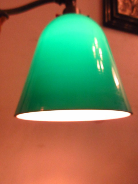 ちなみに、シェードは内側は白、外側はグリーンの被せガラス技法で出来ています。