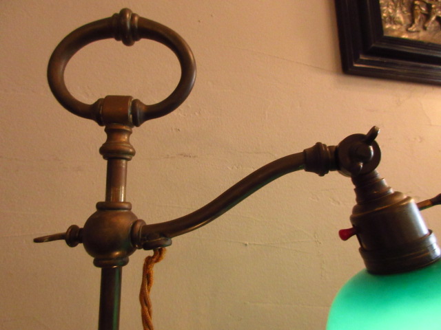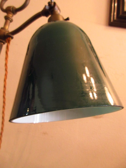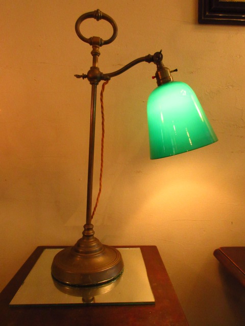 深いグリーンのシェードに、シンプルなスタンド台がいいですね!