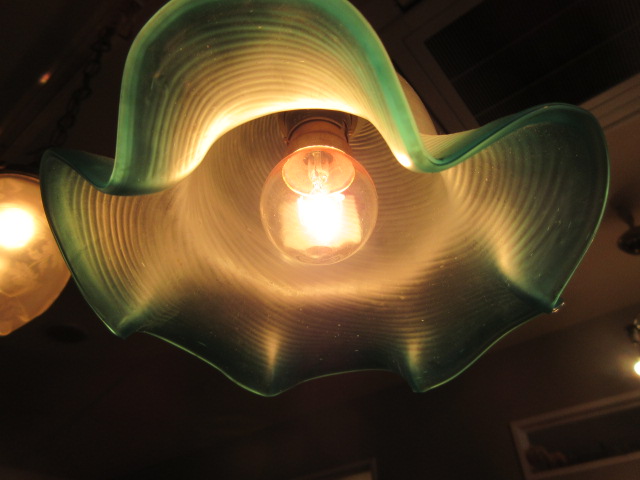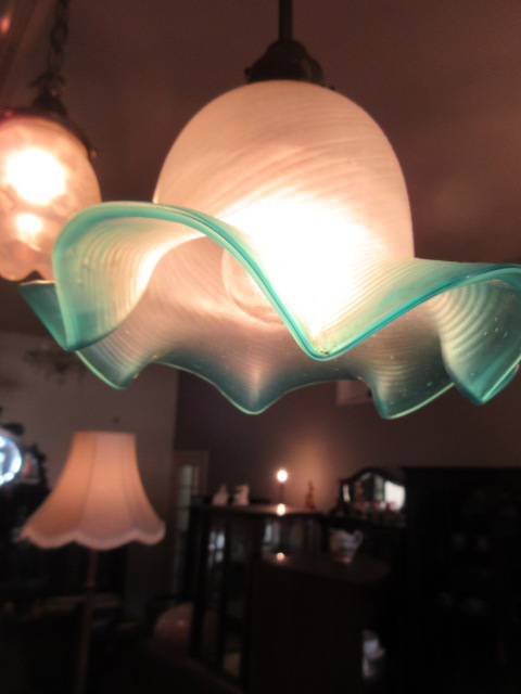 綺麗な水色のガラスシェード。フリルが愛らしいです。
